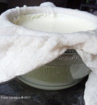 4. Let it rest for approximately 30-40min or up to 1hr depending how soft you want the consistency to be. You can leave it longer if you would like firmer ricotta.