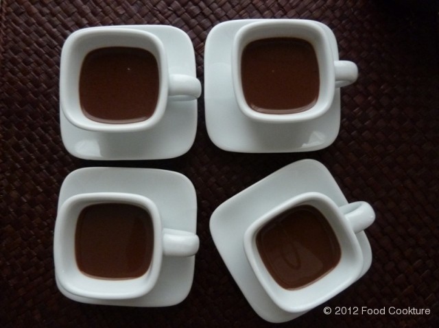I did not receive the recipe from the chef, so below is my attempt at recreating this marvel of a drink. Although I usually post a healthier and lighter version of recipes, this one by no means fits those categories. However, it is so rich you will want to have just a little, if you can manage to resist drinking it all! At the event it was served in shot glasses, here I serve them in espresso cups. You can enjoy it during any season and serve it hot or cold. I learned there is no such thing as a day too hot to have hot chocolate! So no matter how it’s served I’m sure you will enjoy it as much as we did.